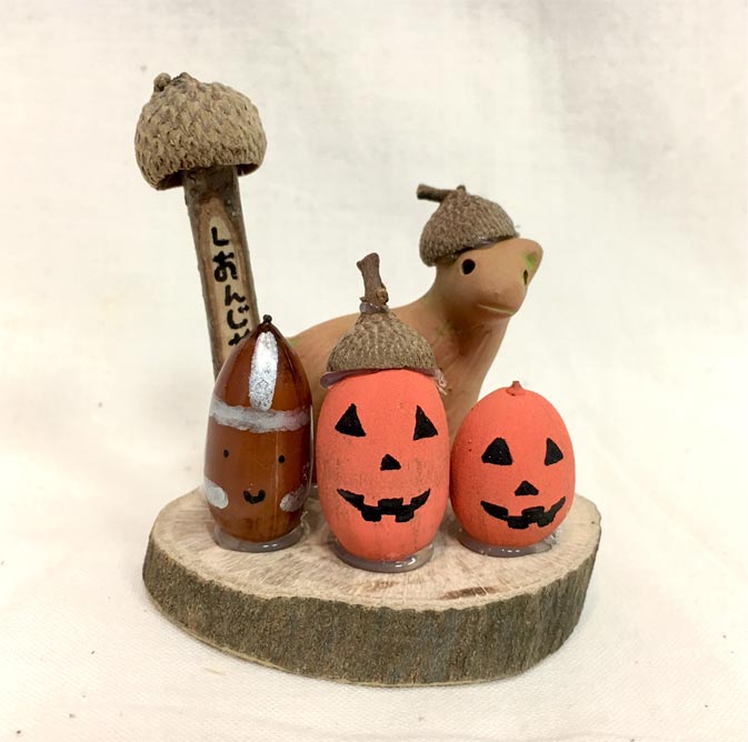そんな木から落ちたドングリをつかって、ハロウィンの飾りをつくります。オプションでミニ埴輪をのせてもカワイイですよ!