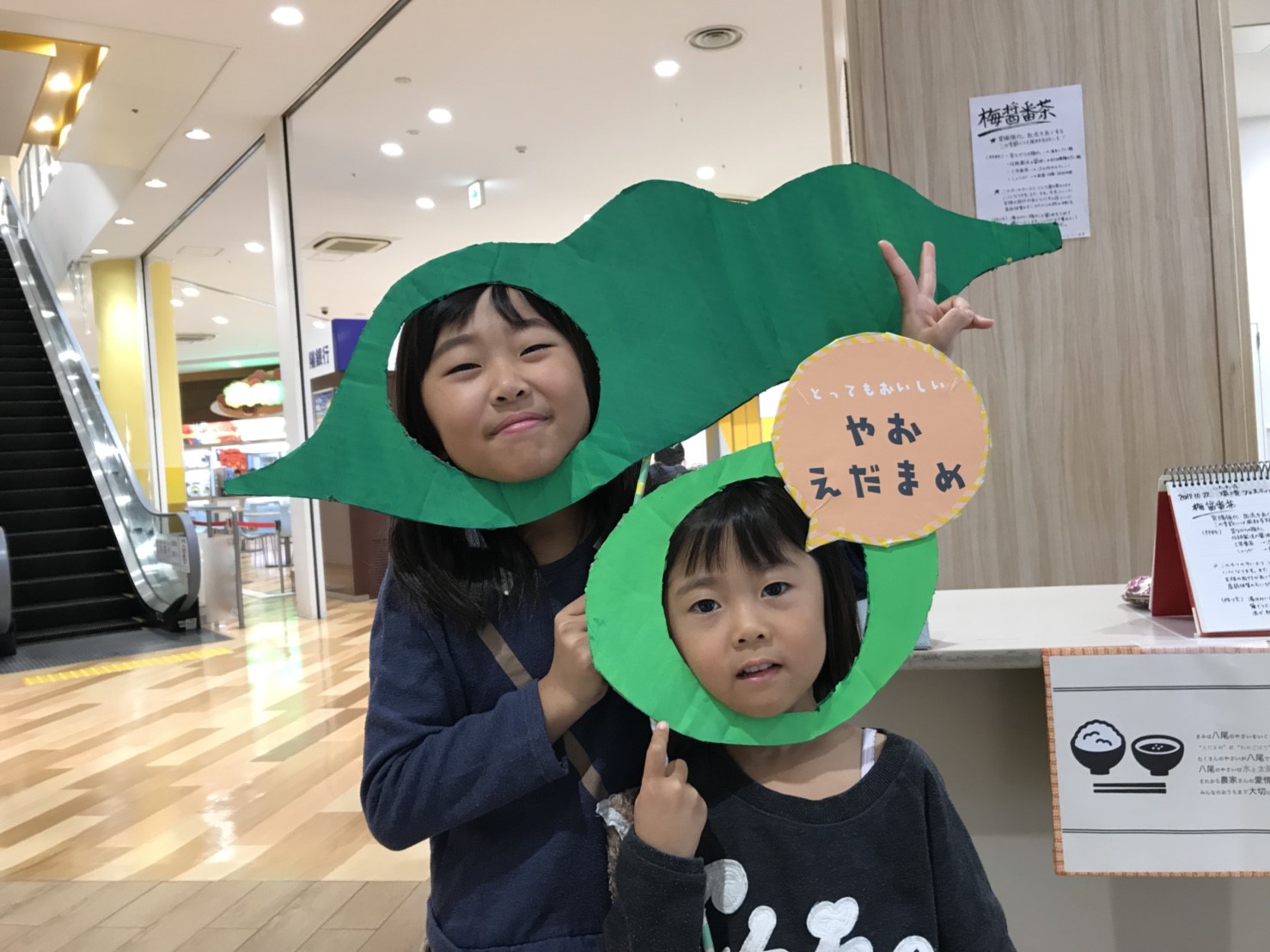 食と健康をテーマに、地産地消や栄養バランスの啓発を促しました。 ブースにはスタンプラリーのワードが掲載されていたため、朝から多くの人で溢れていました。スタンプラリーの景品は30分ほどで完売してしまったのですが、その後も景品であるドーナツを求めて多くの人が訪れました。八尾市の特産品である、えだまめを紹介するコーナーには、主婦の方を中心に幅広い年齢層の人たちがブースを訪れ、楽しみながら体験してくださっていました。