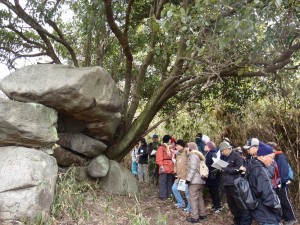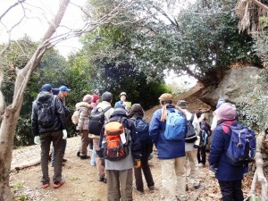 前日の天気予報では雪とのことで、天候が心配されましたが、寒いながらも無事に心合寺山までたどりつけました。明治21年に坪井正五郎・山崎直方両氏のスケッチによって紹介された古墳(塚穴)を求めて、古絵図を頼りに彼らの足取りを考えてみました。