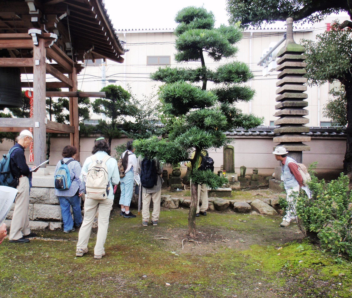 又、地蔵めぐりの方は志紀・弓削霊園の六地蔵像や、八尾市内における最古の地蔵と言われる鎌倉期に造営された天王寺屋地蔵像などを見学し、地蔵像のいわれやその特徴を学習して、全員無事に柏村稲荷神社で解散しました。